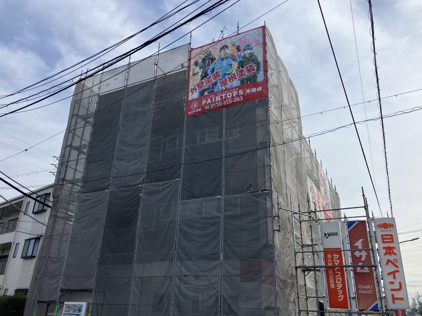 PAINTOPS半田店では、飛散防止ネットの設置や天候チェック、近隣挨拶などを徹底しています。