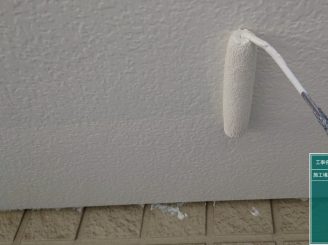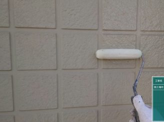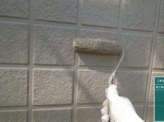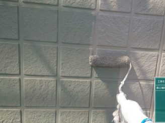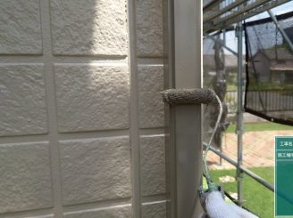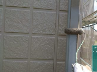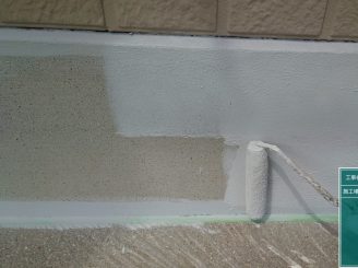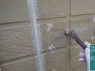 外壁のシリコンの上に専用のプライマーを塗っていきます。シリコンの上から塗装してしまうと、塗料との相性が悪い為塗膜剥離の原因となります。