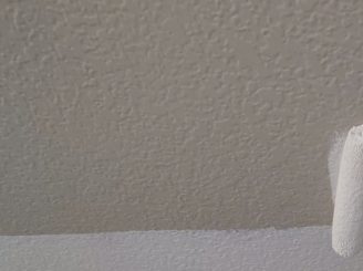 軒天井 上塗り2回目塗装中です。