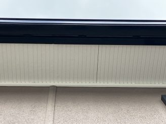 戸袋に汚れと白錆の付着が見られます。こちらも洗浄後に丁寧なケレン作業が必須です。
