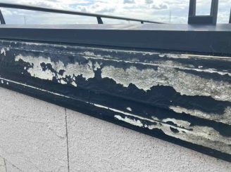 幕板施工前 ボードに水がしみ込み、爆裂したことで下地がボロボロになってしまっています。
