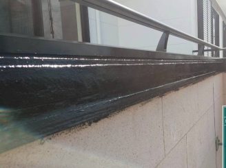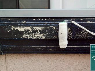 クラック補修施工前 0.3mm以上のひび割れは塗料だけでは埋めることが難しい為、補修材で補修してから塗装を行います。