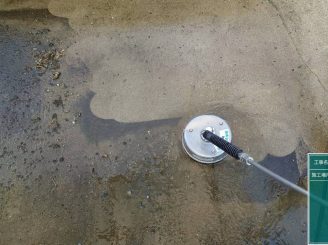 土間コンクリート 高圧洗浄作業 外壁はもちろん、駐車場土間コンクリートも綺麗にさせて頂いております。