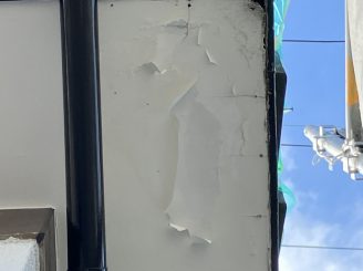 軒天井に水が回りボードの塗膜も剥離している状態でした