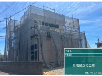 足場設営 職人の安全はもちろん、塗装のムラを防ぎ、仕上がりの美しさにもつながります。 飛散防止ネットで近隣への配慮も◎ 足場があるからこそ、安心・高品質な工事が実現します!