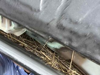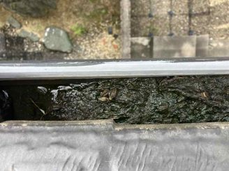 鳥の巣を作られたことにより樋が詰まり、ヘドロが堆積しております。