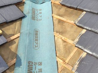 棟の中の貫板と呼ばれる部分も傷んでいたので取り換えて、補修を行いました。