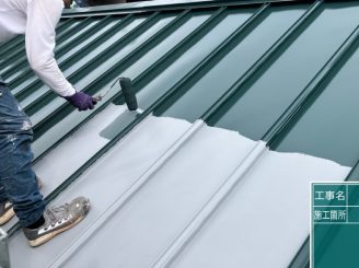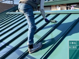 屋根下塗り塗装中