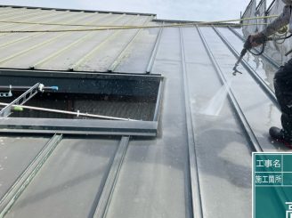 屋根高圧洗浄作業