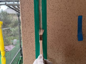 目地シーリング工事 プライマー塗布 この作業が甘いと後にシーリングが剥がれやすくなってしまうため、しっかりと塗布を行います。