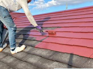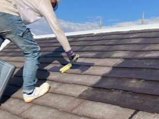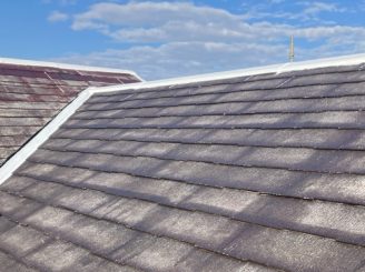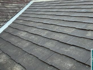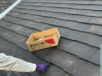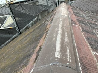 瓦にシーリングが打ってあります。 中に入った水が抜けず、雨漏りの原因となるため、撤去する必要があります。