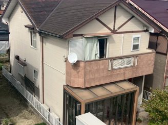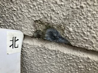 塗膜剥離 表面塗膜が劣化し、建材のセメントがむき出しになっている状態です。水を吸収しやすい為、早期の補修が必要です。