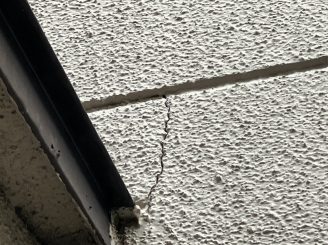 割れが発生しています。軽度な補修では再クラックの危険が高く、専門的な補修作業が必要です。